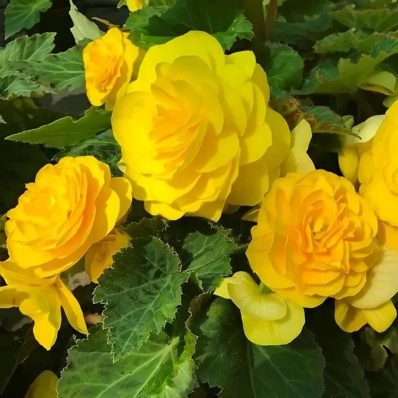 Бегония махровая Йеллоу - самая эффектная бегония. Цветки махровые, до 20 см в диаметре, могут иметь пионовидную, розовидную, камелеевидную, нарциссовидную и бахромчатую формы, цвет насыщенно желтый. Стебель вырастает до 20-30 см