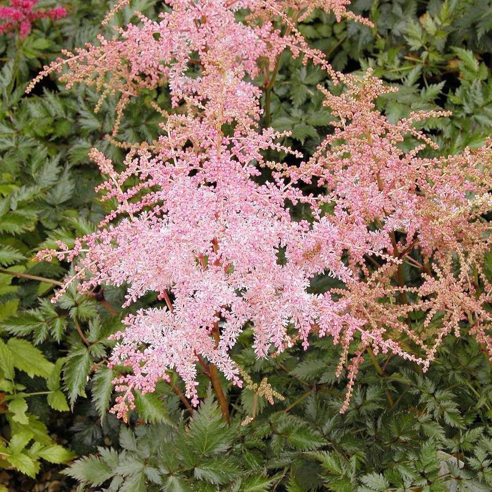 Саженцы астильбы Pink Lightning в полной мере оправдывают свое название, когда в июне-июле вас сад наполняется невероятно красивым «розовым светом». Зазубренная темно-зеленая листва с благородным бронзовым отливом обеспечивает растению декоративность на протяжении всего сезона. Пышные темно-розовые соцветия-метелки постепенно светлеют и обретают очень нежный и мягкий цвет.