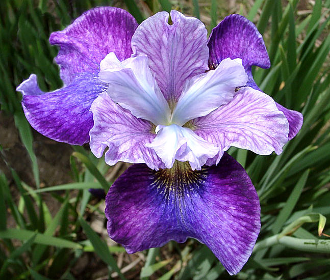 Ирис сибирский Роаринг Джелли (Roaring Jelly) просто идеально для посадки на небольших клумбах и в цветочных питомниках. Растение очень быстро разрастается, и в отличие от других видов ирисов цвести может несколько раз за один сезон. Цветки имеют интересную структуру: верхние лепестки небольшие – серовато-лавандовые, следующие чуть больше – бордово-сиреневые, нижние лепестки самые крупные в бутоне и имеют трехцветное пятно (сине-бело-желтое).