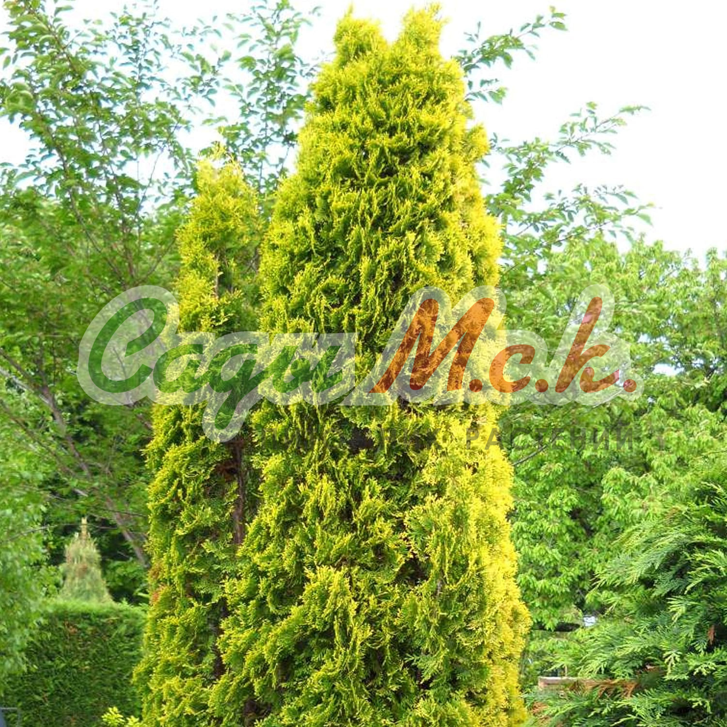 Туя складчатая Zebrina - пестрый сорт туи складчатой. Хвоя данного сорта зеленая с желтыми полосками, за что и получил свое название. Дерево широкой конической формы, высотой до 10-12 м. В 10-летнем возрасте высота около 2,5 м, при диаметре кроны 1,5 м. Годовой прирост около 20 см. В начале крона имеет более рыхлый вид, с возрастом уплотняется.