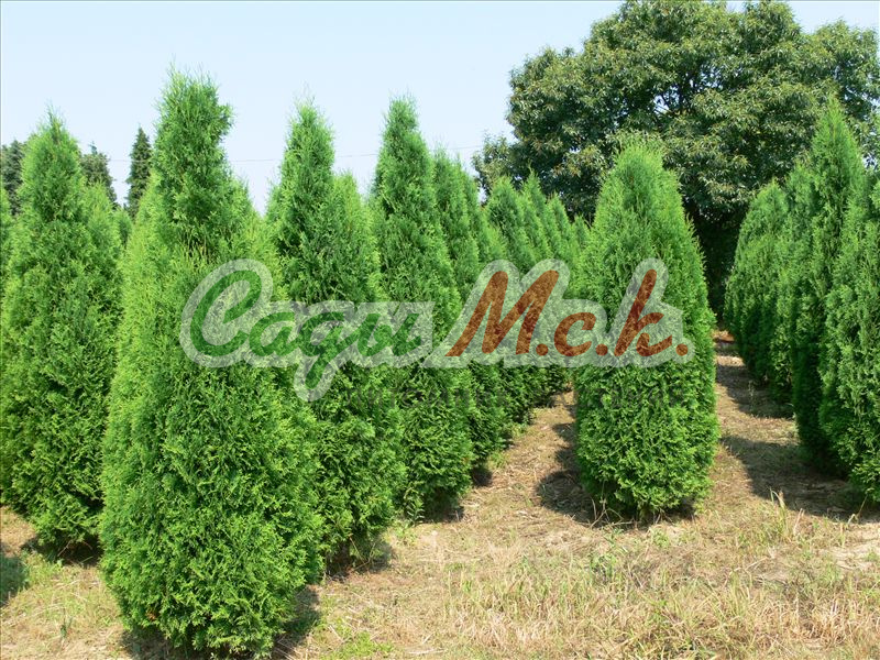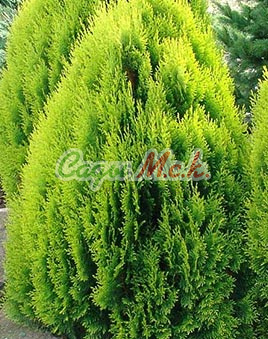 Туя западная Frieslandia - растение до 8 м в высоту и до 3 м в диаметре. Растет быстро: годовой прирост в высоту составляет 20 см. Крона плотная, широкая, колоновидная. Хвоя матовая, плотная, чешуйчатая ярко-зеленого цвета. Осенью листва становится серовато-бурого цвета, а весной снова зеленеет. Популярный сорт. Благодаря сравнительно быстрому росту часто используется для создания формованных живых изгородей.