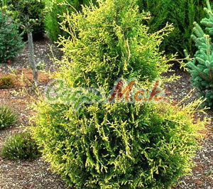 Узкая острая желто-хвойная туя высотой до 10 м. и диаметром кроны до 1,8 м. Дерево растет довольно быстро, ежегодно прибавляя до 30 см высоты. Имеет прямой, ровный и стройный ствол, к которому плотно прижимаются скелетные ветви, образуя красивую устремленную вверх общую форму дерева.Скелетные ветки короткие и мощные, тесно прижимаются друг к другу, а на концах начинают сильно ветвиться. За счет такого строение крона выглядит очень густой и плотной, формируется симметрично. Хвоя густая, яркая, золотисто-жёлтая, не подгорает на солнце, зимой приобретает бронзовый оттенок. Хорошо себя чувствует как на солнце, так и в полутени. На солнце не горит.<br>